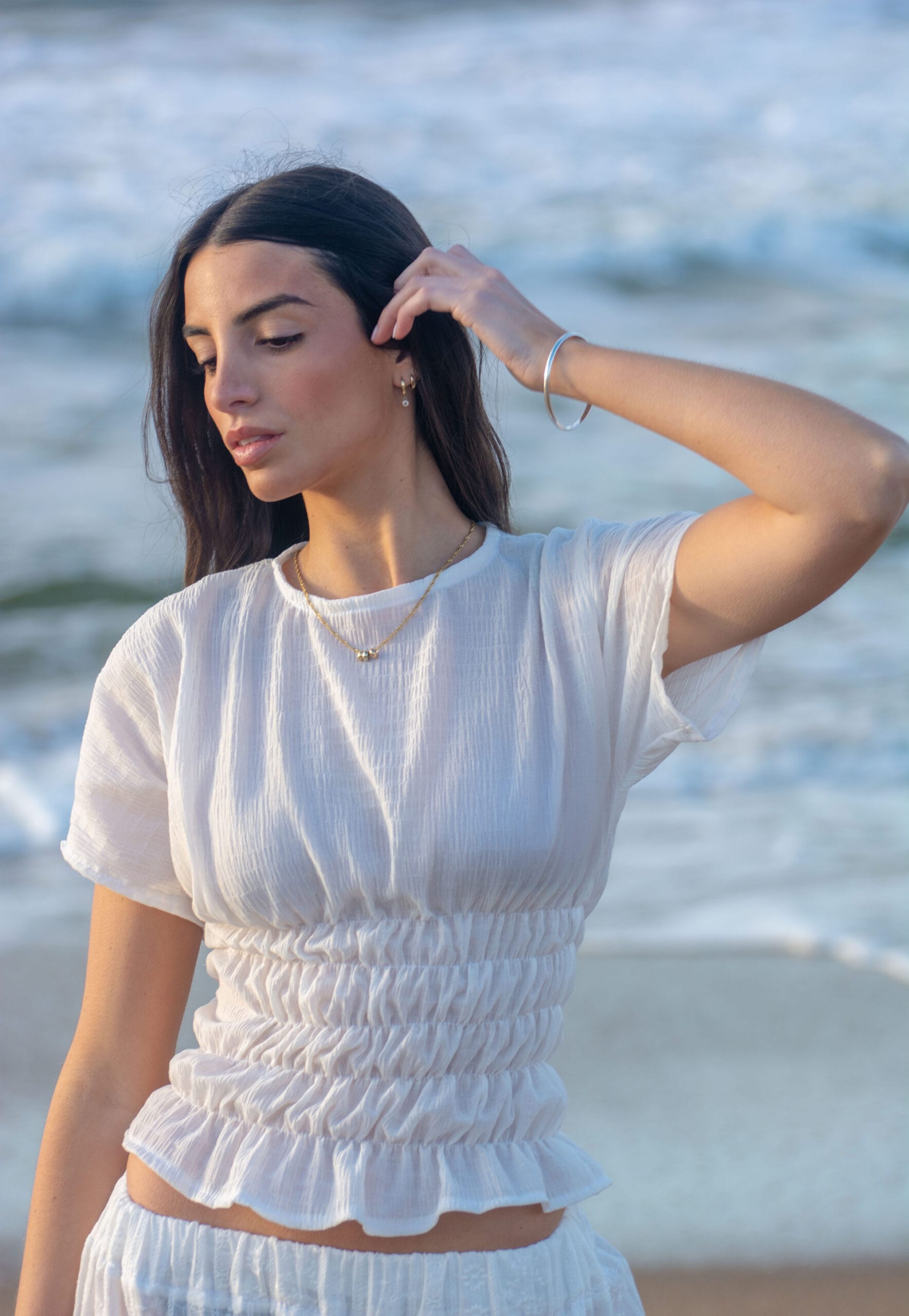En blanco puro, transmite delicadeza y versatilidad: un básico refinado que se adapta tanto a looks relajados como a combinaciones más sofisticadas. Atemporal y femenina, la Solea se convertirá en una aliada imprescindible para los días de calor.