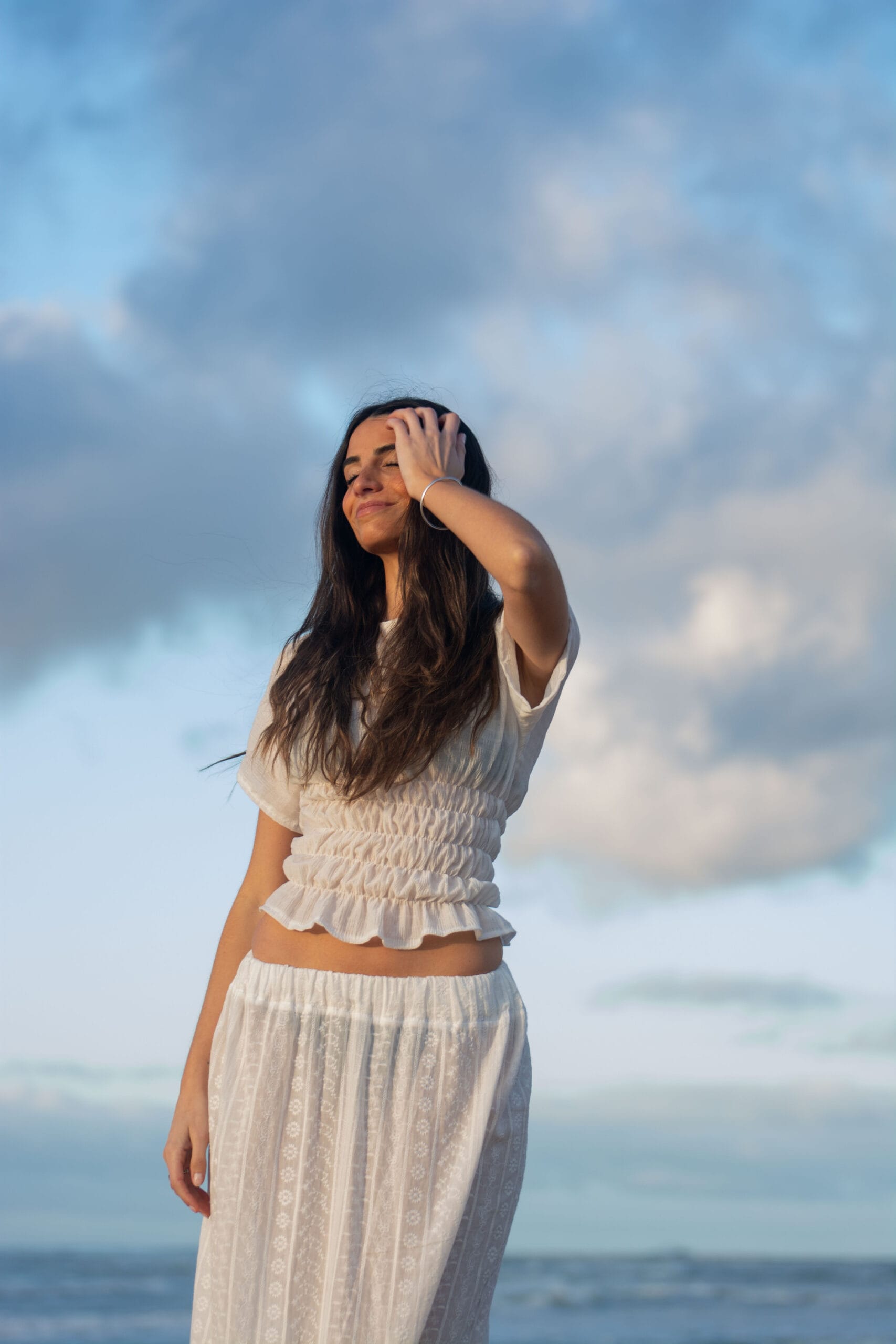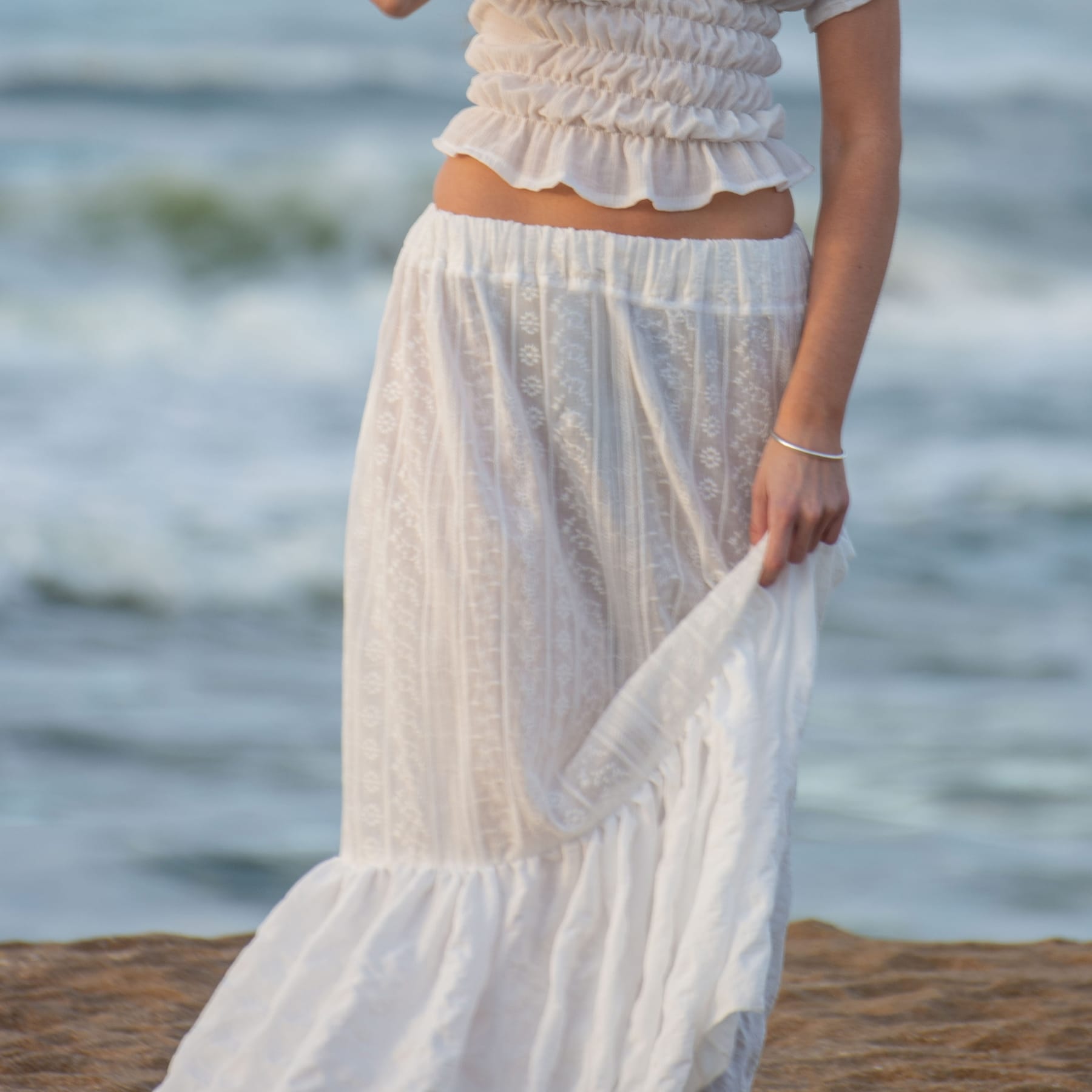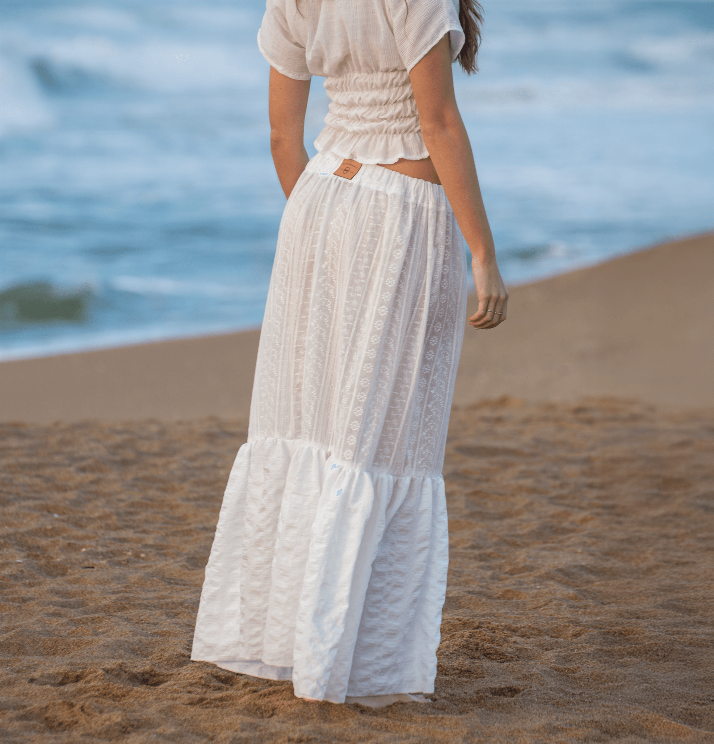 La Pollera Lumière combina la delicadeza del broderie con la fluidez de una tela lisa en la parte inferior, logrando una prenda con movimiento, frescura y distinción. En blanco puro, transmite elegancia atemporal y se convierte en un básico versátil para los días de calor.