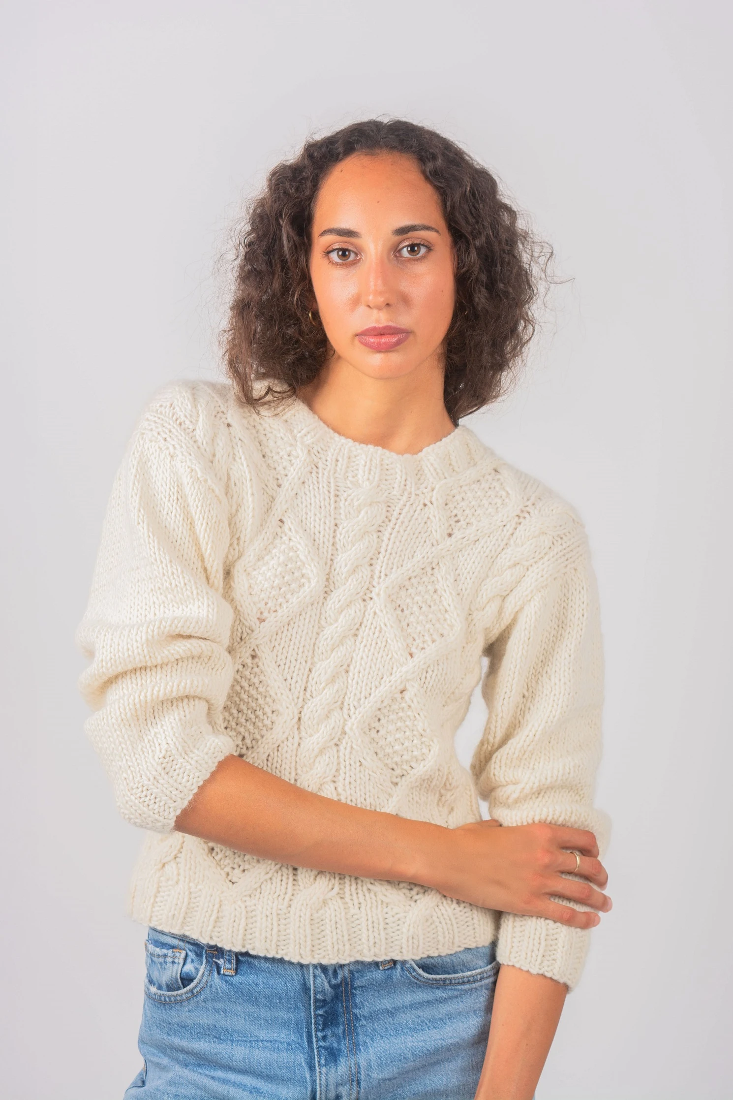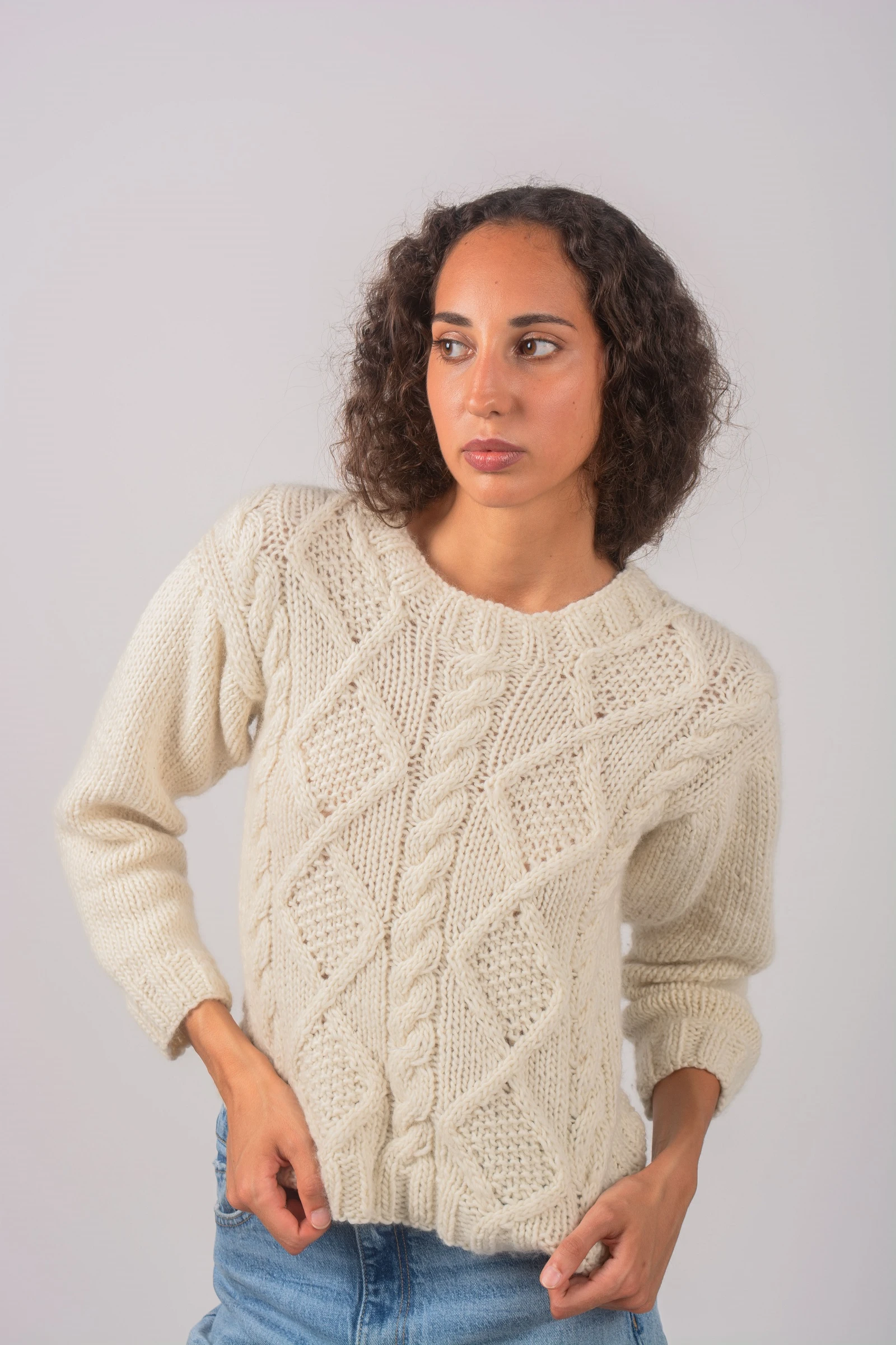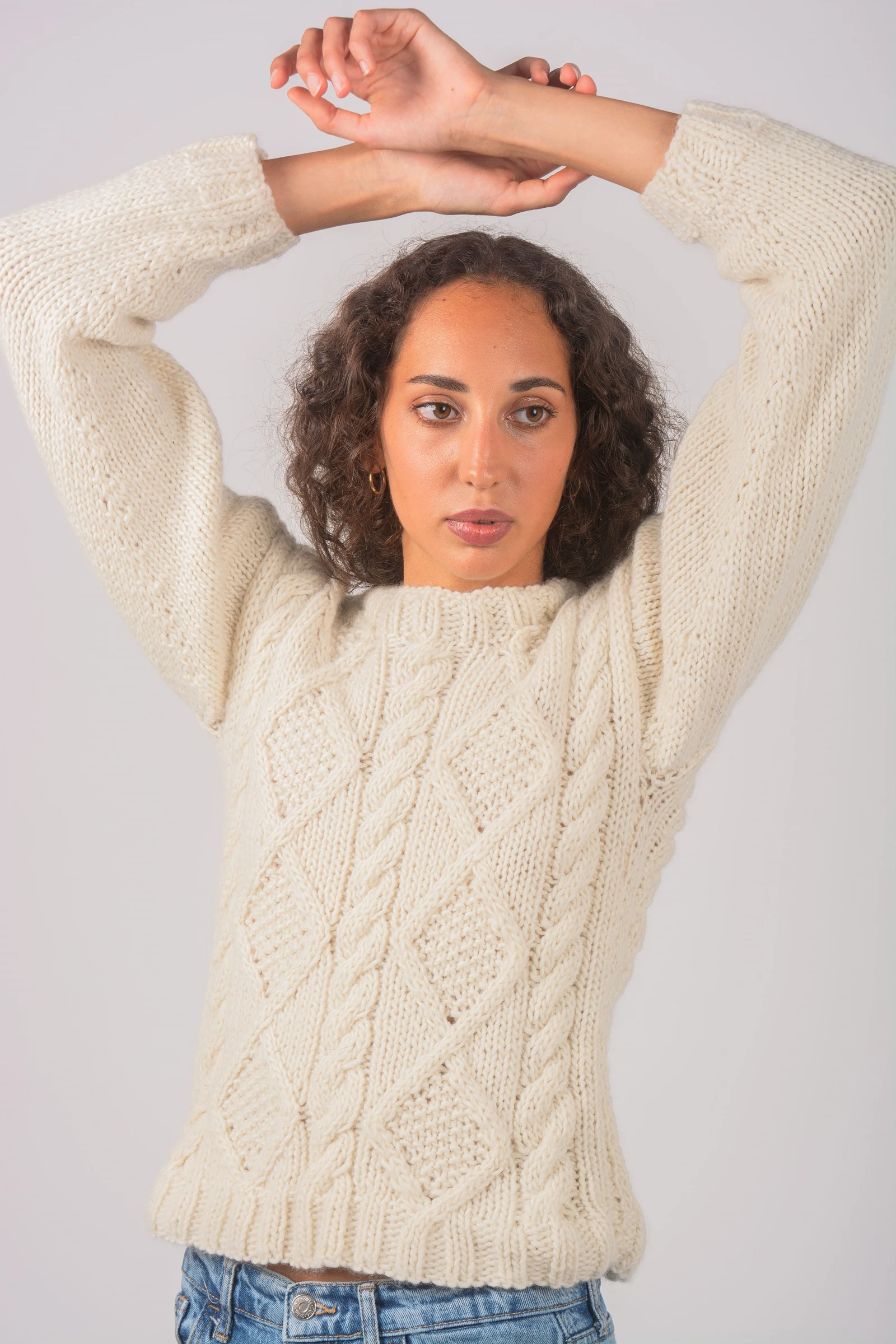 Clásico y abrigado, el Sierra Sweater está tejido a mano en lana Merino con trenzas y rombos que evocan lo artesanal y atemporal. Su textura gruesa y cálida lo convierte en un esencial para los días fríos.
